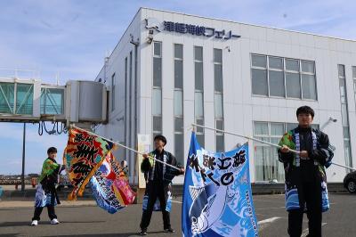 8月30日(土)津軽海峡フェリー大間フェリーターミナルにおいて、8月めんちょこ活動部旗振りウェルカム活動を実施し、18名の生徒が参加してくれました。