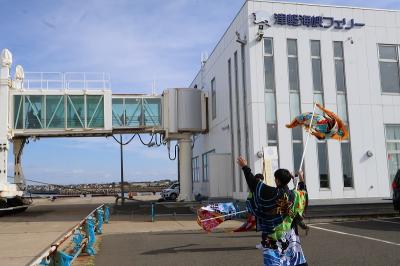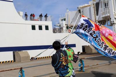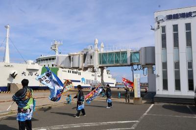 当日は秋晴れのもと、「よぐ来たの~!」と叫ぶ生徒達の声が海峡に響き渡り、風になびくめんちょこ旗が盛大にお客様を歓迎し、大変喜んでいただきました。